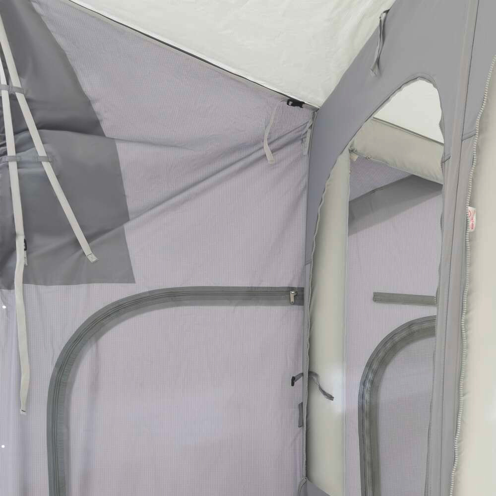 Dometic Residence Tour fortjaldið nýtir alla lengd fortjaldsrennu hjólhýsisins, líkt og öll fortjöld í Residence línunni. Nú hefur verið skipt úr þungu polycotton-efni yfir í létt og endingargott ripstop pólýester með UV-vörn, sem veitir betri afköst og auðveldari meðhöndlun.